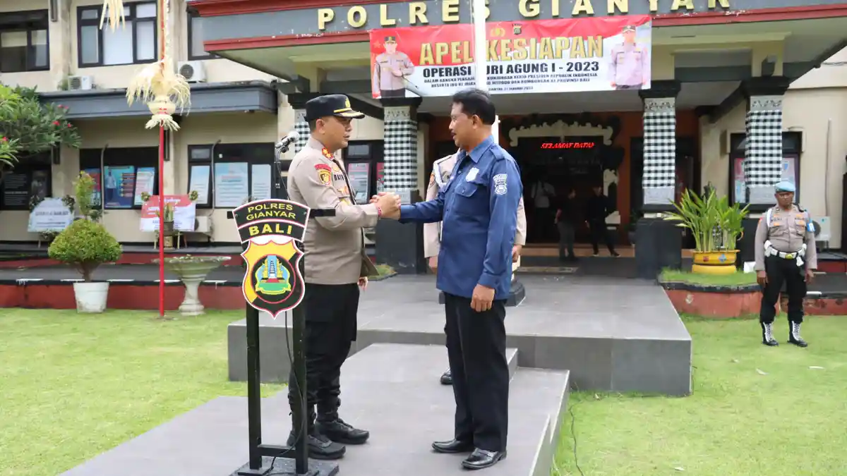 Secara simbolis Kapolres Gianyar menyerahkan bingkisan, sebagai bentuk penghargaan dan kenang-kenangan.