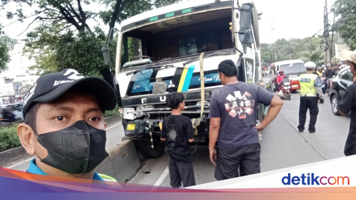 Berdasarkan foto yang diunggah TMC Polda Metro Jaya, terlihat bagian depan bumper truk tersebut hancur. Kaca depan truk tersebut terpantau pecah.