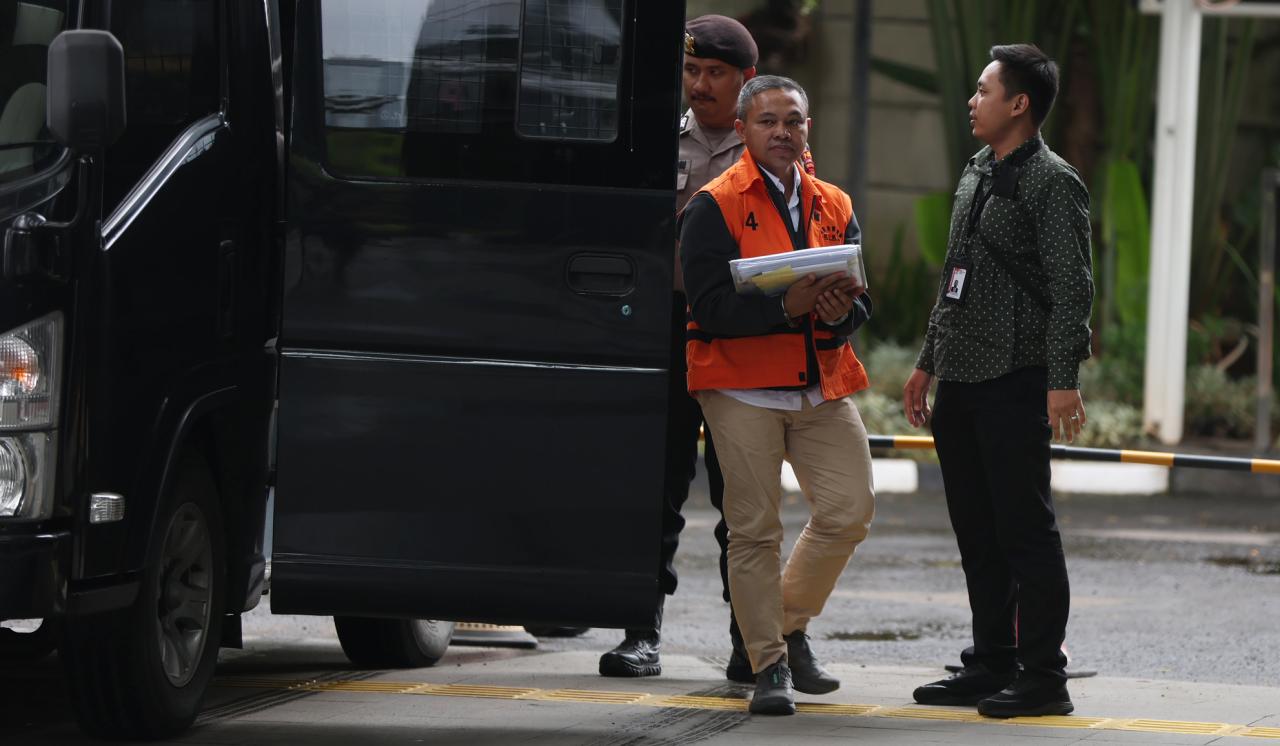 SinPo.id – Gubernur Riau nonaktif Abdul Wahid berjalan menuju ruang pemeriksaan di Gedung KPK Merah Putih, Jakarta, Kamis (19 Februari 2026). KPK memeriksa Abdul Wahid untuk pendalaman penyidikan kasus dugaan korupsi dalam bentuk pemerasan di lingkungan Pemprov Riau tahun anggaran 2025 dengan barang bukti uang senilai Rp1,6 miliar terdiri dari 9.000 Pound sterling dan 3.000 dolar AS.