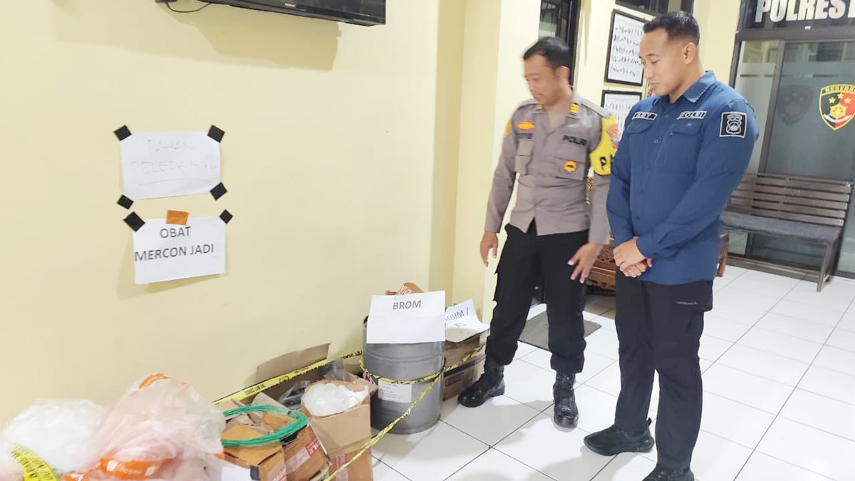 Barang bukti yang diamankan antara lain 12 kilogram potasium, 17 kilogram brom, 3 kilogram belerang, dan 5 kilogram arang. Jika ditotal, seluruh barang bukti mencapai sekitar 42 kilogram.
