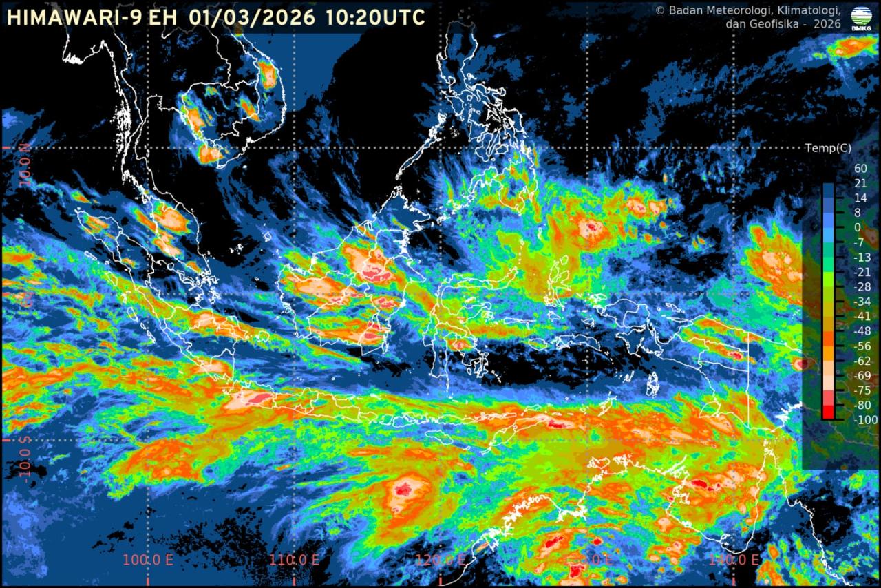 Kombinasi fenomena atmosfer ini memicu potensi cuaca signifikan di beberapa bagian Indonesia. BMKG mengimbau masyarakat untuk meningkatkan kewaspadaan terhadap potensi Hujan Lebat hingga Sangat Lebat di wilayah:
