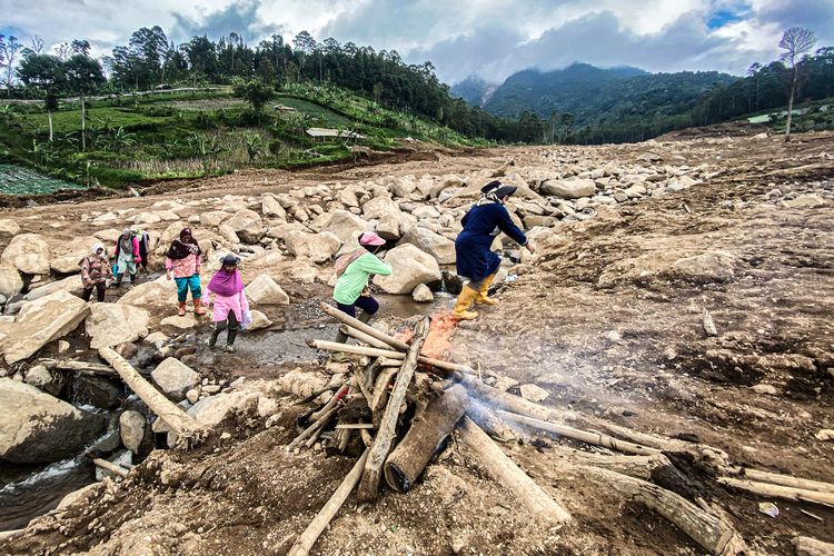 “Anak saya jatuh ke sungai. Untung air tidak deras,” ujar Aab yang juga mengalami luka patah tulang terbuka di tungkai kanan bawah serta patah pergelangan tangan.